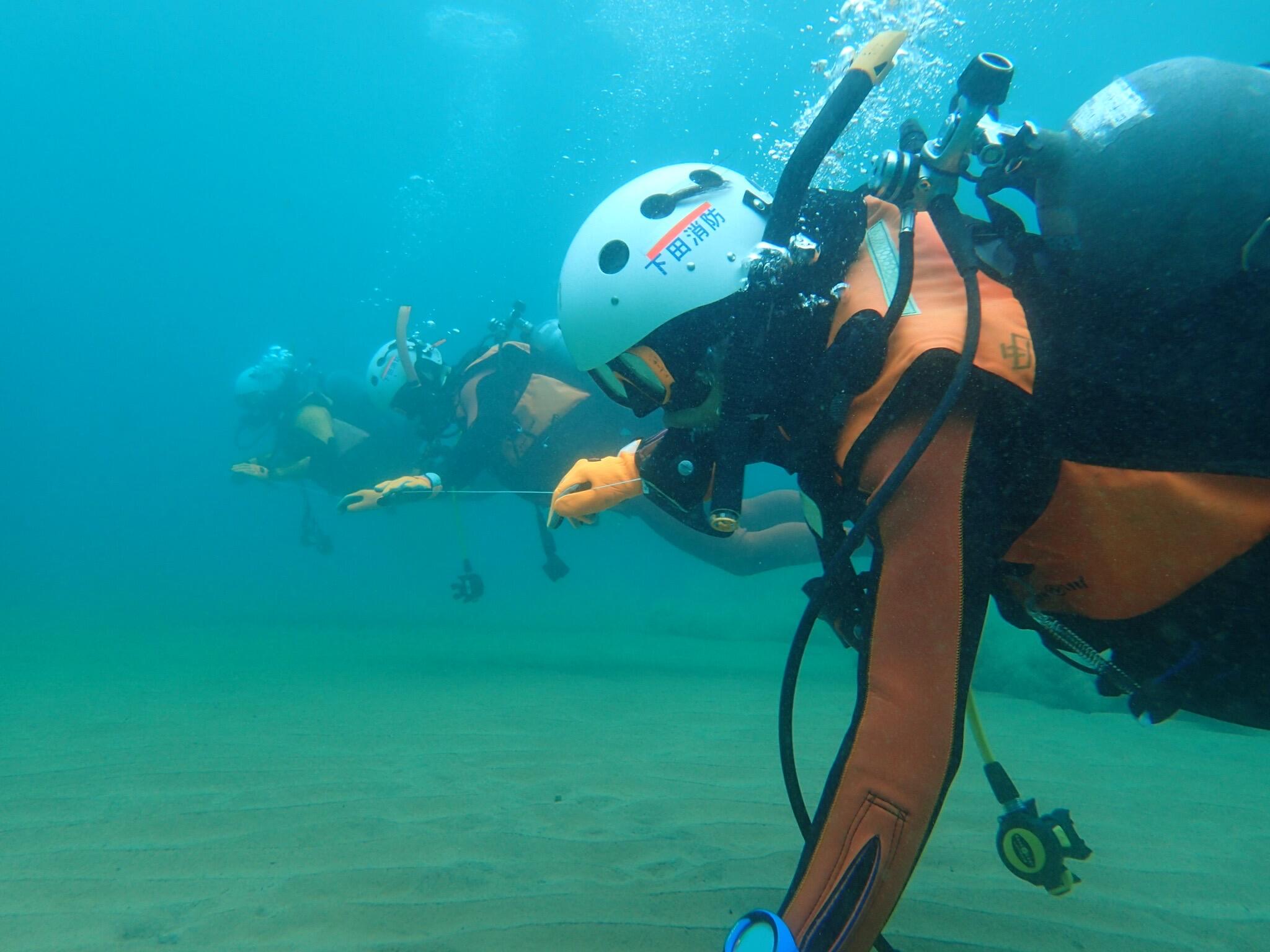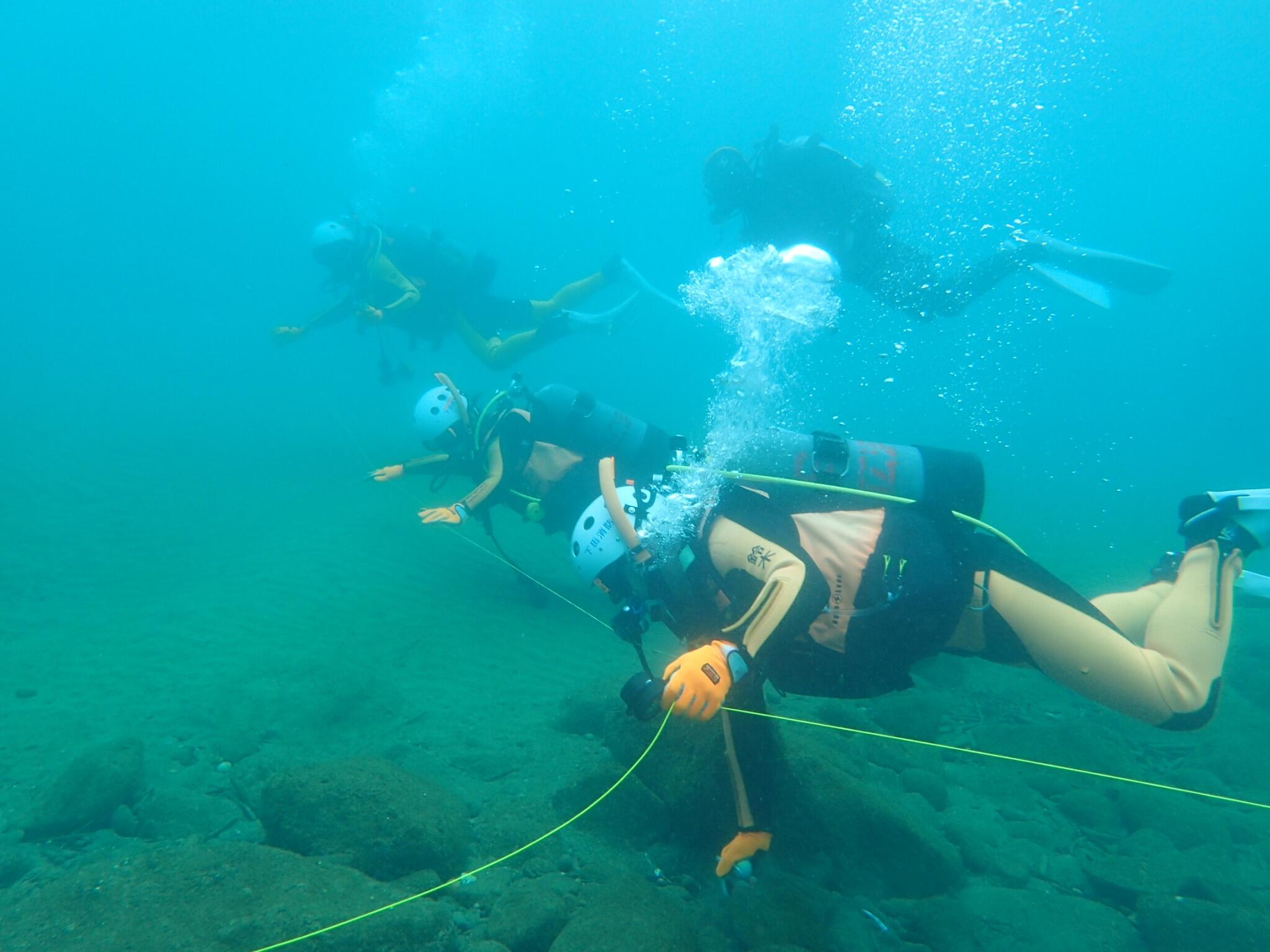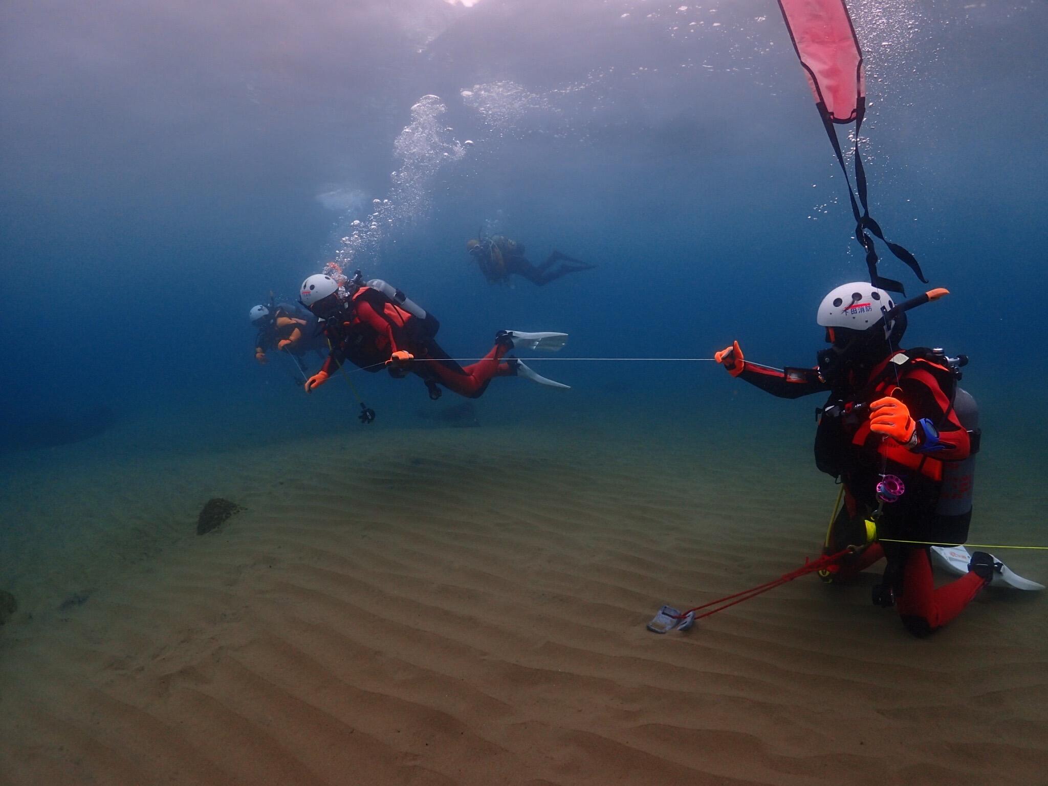 水中捜索の練習、姿勢やフィンキックの確認など!