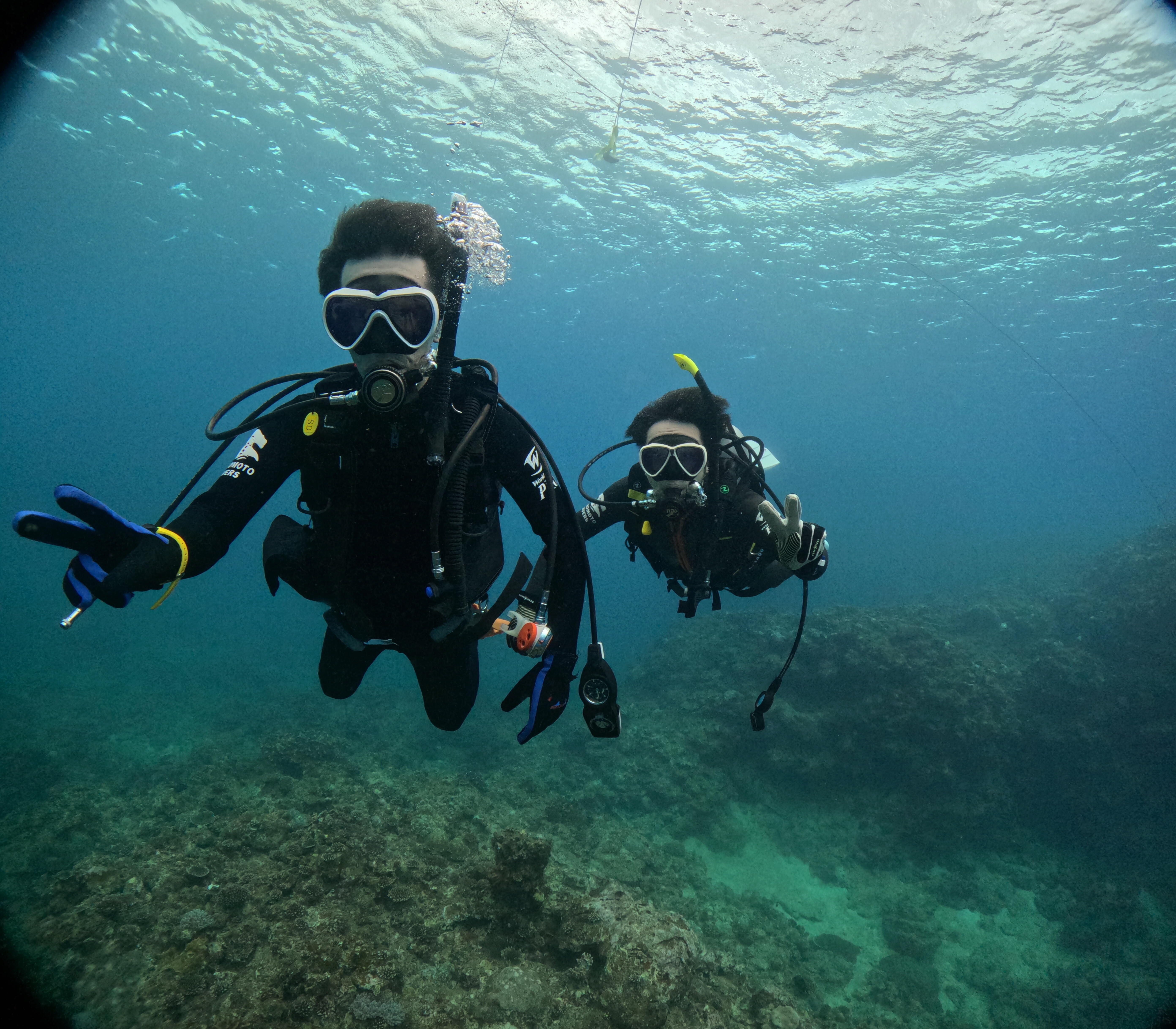 そんな美しい海の中で中性浮力のおさらいと魚の見分け方を頑張りましたね!!笑